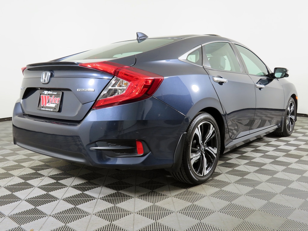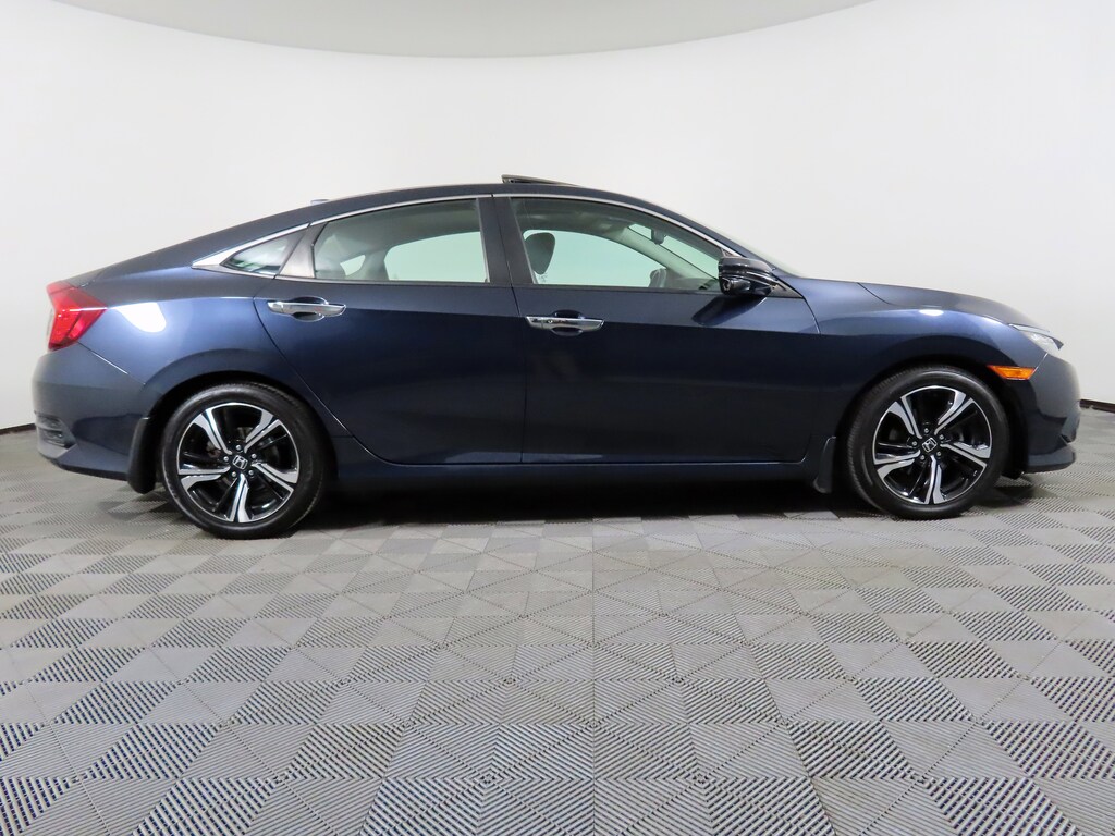 Jeff Wyler Honda of Colerain is honored to offer this outstanding 2016 Honda Civic Touring in Cosmic Blue Metallic. Well equipped with: 10 Speakers, 17" Alloy Wheels, 4-Wheel Disc Brakes, ABS brakes, Air Conditioning, Alloy wheels, AM/FM radio: SiriusXM, Apple CarPlay/Android Auto, Auto-dimming Rear-View mirror, Automatic temperature control, Brake assist, Bumpers: body-color, Compass, Delay-off headlights, Driver door bin, Driver vanity mirror, Dual front impact airbags, Dual front side impact airbags, Electronic Stability Control, Emergency communication system: HondaLink Assist, Exterior Parking Camera Rear, Four wheel independent suspension, Front anti-roll bar, Front Bucket Seats, Front Center Armrest, Front dual zone A/C, Front fog lights, Front reading lights, Fully automatic headlights, Heated door mirrors, Heated front seats, Heated rear seats, Illuminated entry, Leather Seat Trim, Leather Shift Knob, Low tire pressure warning, Navigation System, Occupant sensing airbag, Outside temperature display, Overhead airbag, Panic alarm, Passenger door bin, Passenger vanity mirror, Power door mirrors, Power driver seat, Power moonroof, Power passenger seat, Power steering, Power windows, Radio data system, Radio: 450-Watt AM/FM/HD/SiriusXM Audio System, Rain sensing wipers, Rear anti-roll bar, Rear seat center armrest, Rear window defroster, Reclining Heated Front Bucket Seats, Remote keyless entry, Security system, Speed control, Speed-sensing steering, Speed-Sensitive Wipers, Split folding rear seat, Spoiler, Steering wheel mounted audio controls, Tachometer, Telescoping steering wheel, Tilt steering wheel, Traction control, Trip computer, Turn signal indicator mirrors, and Variably intermittent wipers.