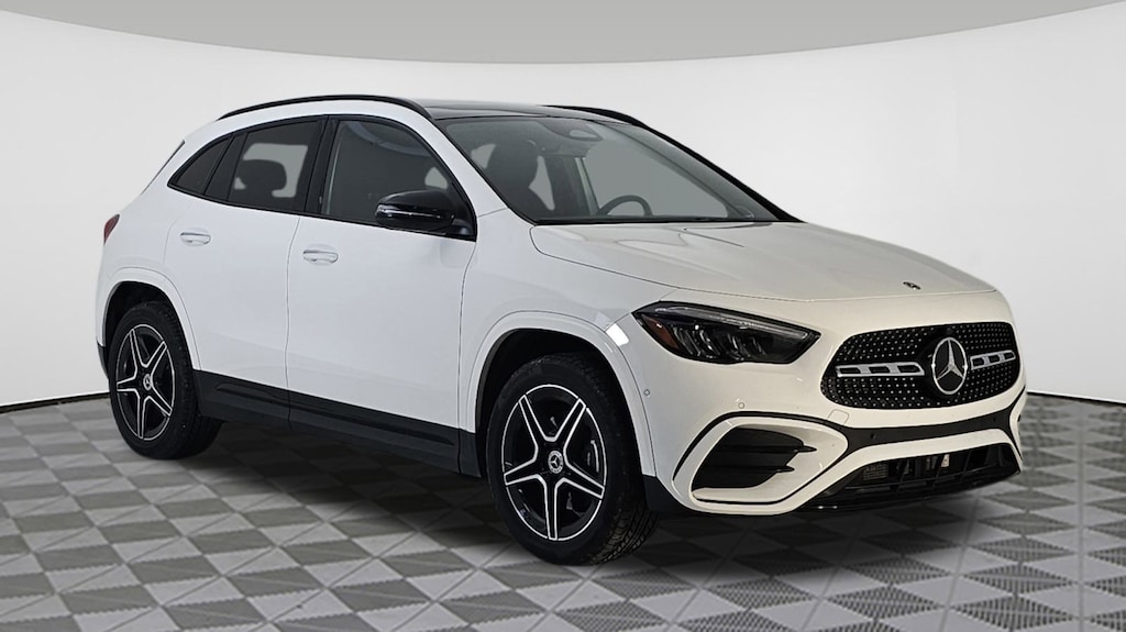 Polar White 2025 Mercedes-Benz GLA 250 4MATIC® 8 Speed Dual Clutch 2.0L I4 Turbocharged Active Distance Assist DISTRONIC®, Advanced Sound System, Burmester® Surround Sound System, Door Sills w/Mercedes-Benz Lettering, Exclusive Package, Heated Steering Wheel, Heated Washer System, LED Logo Projectors, MB Navigation, MBUX Augmented Reality for Navigation, Music Streaming, Panoramic Sliding Sunroof, Sport Seats w/Separate Headrests, Wheels: 19" AMG® Twin 5-Spoke w/Black Accents, Winter Package.