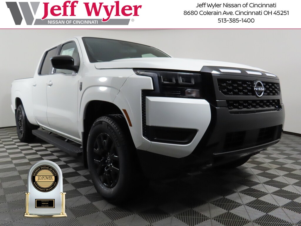 $5,187 off MSRP! Glacier White 2026 Nissan Frontier SV 4WD 9-Speed Automatic with Overdrive Jeff Wyler Nissan of Cincinnati is proud to offer this good-looking 2026 Nissan Frontier SV in Glacier White. Well equipped with: Dark Armor Package (Dark FRONTIER Tailgate Lettering, Dark Grill Surround/Mesh/Inner Fascia, Dark Mirror Caps, and Wheels: 17" Dark), SV Convenience Package (120V Power Outlet in Bed, 120V Power Outlet in Rear Center Console, Bed Under-Rail Lighting, Heated Front Seats, Heated Leather Steering Wheel, Heated Outside Mirrors, HVAC - Dual-Zone Front Auto A/C, I-Key w/Request Switches on O/S Handles, Locking Glove Box, Remote Engine Starter, Spray-In Bedliner, Tow/Haul Mode Switch, Trailer Hitch w/Wiring Harness, and Utili-Track System), 4WD, 17" Alloy Wheels, 3.692 Axle Ratio, 4-Wheel Disc Brakes, 6 Speakers, ABS brakes, Air Conditioning, Alloy wheels, AM/FM radio: SiriusXM, Anti-whiplash front head restraints, Auto High-beam Headlights, Blade Running Board, Blind Spot Warning, Brake assist, Bumpers: body-color, Carpeted Floor Mats, Delay-off headlights, Driver door bin, Driver vanity mirror, Dual front impact airbags, Dual front side impact airbags, Electronic Stability Control, Electronic Tailgate Lock, Emergency communication system, Front anti-roll bar, Front Bucket Seats, Front Center Armrest, Front reading lights, Front wheel independent suspension, Fully automatic headlights, Grille Accent Lighting, Heated door mirrors, Illuminated entry, Knee airbag, Low tire pressure warning, Occupant sensing airbag, Overhead airbag, Overhead console, Panic alarm, Passenger door bin, Passenger vanity mirror, Power door mirrors, Power driver seat, Power steering, Power windows, Premium Cloth Seat Trim, Radio data system, Radio: SXM/AM/FM/AUX/USB Audio System, Rear anti-roll bar, Rear seat center armrest, Rear side impact airbag, Rear step bumper, Remote keyless entry, Security system, Speed control, Speed-sensing steering, Splash Guards, Split folding rear seat, Steering wheel mounted audio controls, Tachometer, Telescoping steering wheel, Tilt steering wheel, Traction control, Trip computer, Variably intermittent wipers, Voltmeter, and Wireless Apple CarPlay/Wireless Android Auto. 3.8L DI DOHC 24V V6 4WD.Recent Arrival!Wyler Family First Package Includes: NanoCure Appearance Protection: Exterior & Interior Chemical Sealant Applied to Protect Against Environmental Hazards (7 Year Warranty Coverage). Pulse- Rear end Collision Avoidance System Theft Deterrent Strategy gives you 5 Years of Coverage against vehicle Theft, Offering up to a $5,000 benefit. Price includes: $1000 - Nissan MWR MY26 Frontier (Pro4X and SV) Bonus Cash - March. Exp. 03/31/2026 $2500 - Nissan Customer Cash. Exp. 03/31/2026