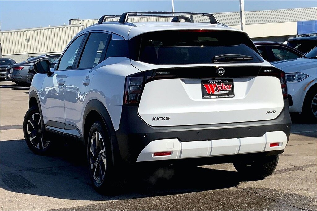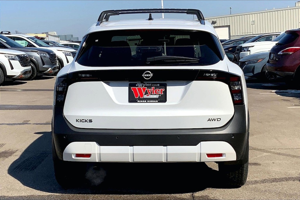 $2,180 off MSRP! Jeff Wyler Kings Nissan is delighted to offer this fantastic 2026 Nissan Kicks SV in Aspen White Tricoat. Well equipped with: Cold Weather Package (Heated Front Seats, Heated Mirrors, and Rear Floor Heater Ducts), 17" Alloy Wheels, 4 Speakers, 4-Wheel Disc Brakes, ABS brakes, Air Conditioning, Alloy wheels, AM/FM radio, Auto High-beam Headlights, Automatic temperature control, AWD Cargo Mat, Blind Spot Warning, Brake assist, Bumpers: body-color, Carpeted Floor Mats, Cloth Seat Trim, Crossbars, Driver door bin, Driver vanity mirror, Dual front impact airbags, Dual front side impact airbags, Electronic Stability Control, Emergency communication system, Exterior Parking Camera Rear, Four wheel independent suspension, Front anti-roll bar, Front Bucket Seats, Front Center Armrest, Front reading lights, Fully automatic headlights, Illuminated entry, Knee airbag, Low tire pressure warning, NissanConnect featuring Apple CarPlay and Android Auto, Occupant sensing airbag, Outside temperature display, Overhead airbag, Panic alarm, Passenger door bin, Passenger vanity mirror, Power door mirrors, Power steering, Power windows, Premium Paint, Radio data system, Radio: AM/FM/SiriusXM Audio System, Rear anti-roll bar, Rear reading lights, Rear side impact airbag, Rear window defroster, Rear window wiper, Remote keyless entry, Security system, Speed control, Speed-sensing steering, Splash Guards, Split folding rear seat, Spoiler, Sport steering wheel, Steering wheel mounted audio controls, Tachometer, Telescoping steering wheel, Tilt steering wheel, Traction control, Trip computer, and Variably intermittent wipers. 27/34 City/Highway MPGWyler Family First Package Includes: NanoCure Appearance Protection: Exterior & Interior Chemical Sealant Applied to Protect Against Environmental Hazards (7 Year Warranty Coverage). Pulse- Rear end Collision Avoidance System Theft Deterrent Strategy gives you 5 Years of Coverage against vehicle Theft, Offering up to a $5,000 benefit. Used vehicles 10 years of age or newer with less than 100,000 miles are eligible for the Wyler Assurance Program, but eligible vehicles must pass our reconditioning process and multi-point inspection. Provided the vehicle passes inspection, vehicles will be eligible for the 6 month/6,000 mile limited warranty. The 6 month/6,000 mile limited warranty is NOT available on AS-IS vehicles, wholesale vehicles, lease buyback/pass-thru vehicles or un-inspected vehicles. Note that this program can also apply to vehicles where the remaining factory coverage is less than 6 months or 6,000 miles. Please check the Federal Trade Commission (FTC) Buyers guide on the vehicle for full details as to whether or not warranty coverage may apply. Contact Dealer for additional details. The Wyler Assurance 6 month/6,000 Mile limited warranty ends 6 months from the date of the Retail Purchase Agreement (BUYERS ORDER) or when the vehicle's odometer registers 6,000 additional miles to the mileage listed on the BUYERS ORDER, whichever comes first. Your Deductible - The warranty holder on your contract pays the first $100 of each covered repair. Price includes: $1000 - Nissan Customer Cash. Exp. 03/02/2026