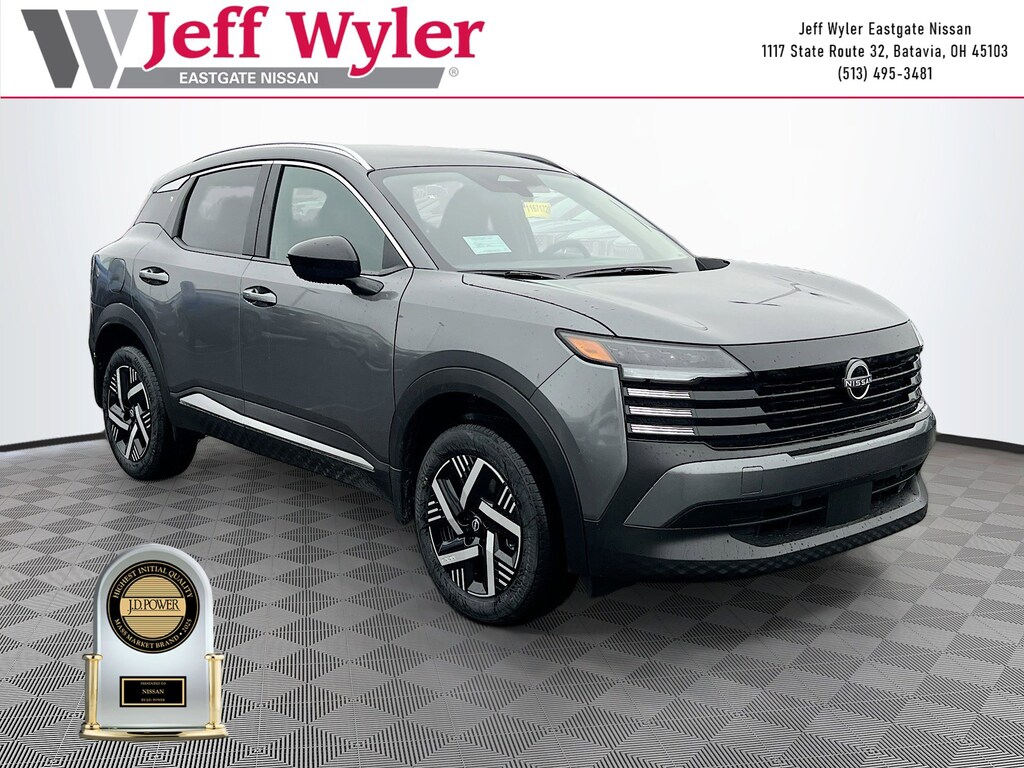 Gun Metallic 2026 Nissan Kicks SV 2.0L DOHC FWD CVT with Xtronic 28/35 City/Highway MPG Jeff Wyler Eastgate Auto Mall is delighted to offer this gorgeous-looking 2026 Nissan Kicks SV in Gun Metallic. Well equipped with: 4 Speakers, 4-Wheel Disc Brakes, ABS brakes, Air Conditioning, AM/FM radio, Auto High-beam Headlights, Automatic temperature control, Blind Spot Warning, Brake assist, Bumpers: body-color, Carpeted Floor Mats & Underfloor Protector, Cloth Seat Trim, Driver door bin, Driver vanity mirror, Dual front impact airbags, Dual front side impact airbags, Electronic Stability Control, Emergency communication system, Exterior Parking Camera Rear, Front anti-roll bar, Front Bucket Seats, Front Center Armrest, Front reading lights, Front wheel independent suspension, Fully automatic headlights, Illuminated entry, Knee airbag, Low tire pressure warning, NissanConnect featuring Apple CarPlay and Android Auto, Occupant sensing airbag, Outside temperature display, Overhead airbag, Panic alarm, Passenger door bin, Passenger vanity mirror, Power door mirrors, Power steering, Power windows, Radio data system, Radio: AM/FM/SiriusXM Audio System, Rear anti-roll bar, Rear reading lights, Rear side impact airbag, Rear window defroster, Rear window wiper, Remote keyless entry, Security system, Speed control, Speed-sensing steering, Splash Guards, Split folding rear seat, Spoiler, Sport steering wheel, Steering wheel mounted audio controls, Tachometer, Telescoping steering wheel, Tilt steering wheel, Traction control, Trip computer, Variably intermittent wipers, and Wheels: 17" Steel Flex w/Full Covers. 28/35 City/Highway MPG Price includes: $1000 - Nissan Customer Cash. Exp. 03/31/2026