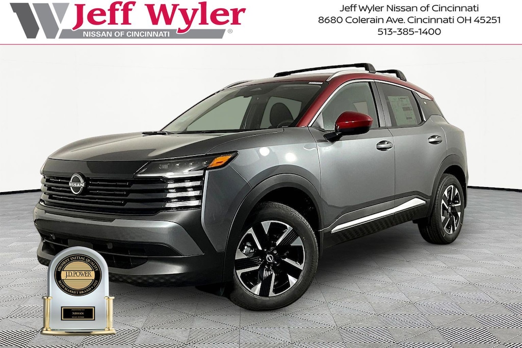 $2,173 off MSRP! Gun Metallic/Scarlet Ember Tintcoat 2026 Nissan Kicks SV AWD CVT with Xtronic Jeff Wyler Nissan of Cincinnati is honored to offer this attractive 2026 Nissan Kicks SV in Gun Metallic/Scarlet Ember Tintcoat. Well equipped with: 17" Alloy Wheels, 4 Speakers, 4-Wheel Disc Brakes, ABS brakes, Air Conditioning, Alloy wheels, AM/FM radio, Auto High-beam Headlights, Automatic temperature control, Blind Spot Warning, Brake assist, Bumpers: body-color, Cloth Seat Trim, Driver door bin, Driver vanity mirror, Dual front impact airbags, Dual front side impact airbags, Electronic Stability Control, Emergency communication system, Exterior Parking Camera Rear, Four wheel independent suspension, Front anti-roll bar, Front Bucket Seats, Front Center Armrest, Front reading lights, Fully automatic headlights, Illuminated entry, Knee airbag, Low tire pressure warning, NissanConnect featuring Apple CarPlay and Android Auto, Occupant sensing airbag, Outside temperature display, Overhead airbag, Panic alarm, Passenger door bin, Passenger vanity mirror, Power door mirrors, Power steering, Power windows, Radio data system, Radio: AM/FM/SiriusXM Audio System, Rear anti-roll bar, Rear reading lights, Rear side impact airbag, Rear window defroster, Rear window wiper, Remote keyless entry, Security system, Speed control, Speed-sensing steering, Split folding rear seat, Spoiler, Sport steering wheel, Steering wheel mounted audio controls, Tachometer, Telescoping steering wheel, Tilt steering wheel, Traction control, Trip computer, and Variably intermittent wipers. 2.0L DOHCRecent Arrival! 27/34 City/Highway MPGWyler Family First Package Includes: NanoCure Appearance Protection: Exterior & Interior Chemical Sealant Applied to Protect Against Environmental Hazards (7 Year Warranty Coverage). Pulse- Rear end Collision Avoidance System Theft Deterrent Strategy gives you 5 Years of Coverage against vehicle Theft, Offering up to a $5,000 benefit. Price includes: $1000 - Nissan Customer Cash. Exp. 05/04/2026
