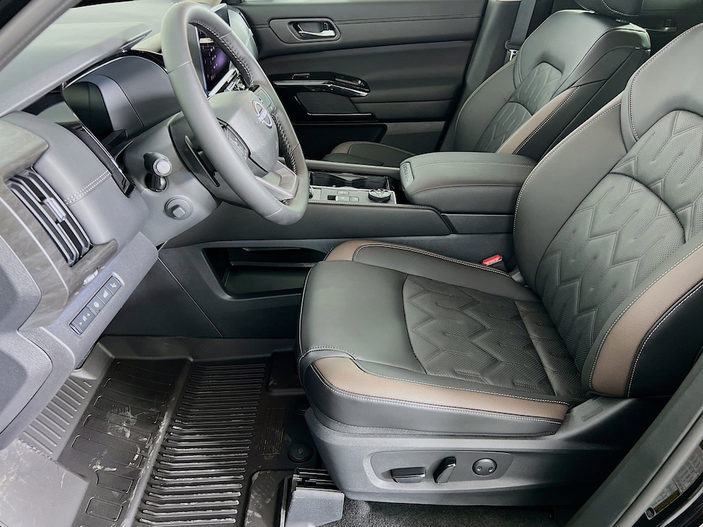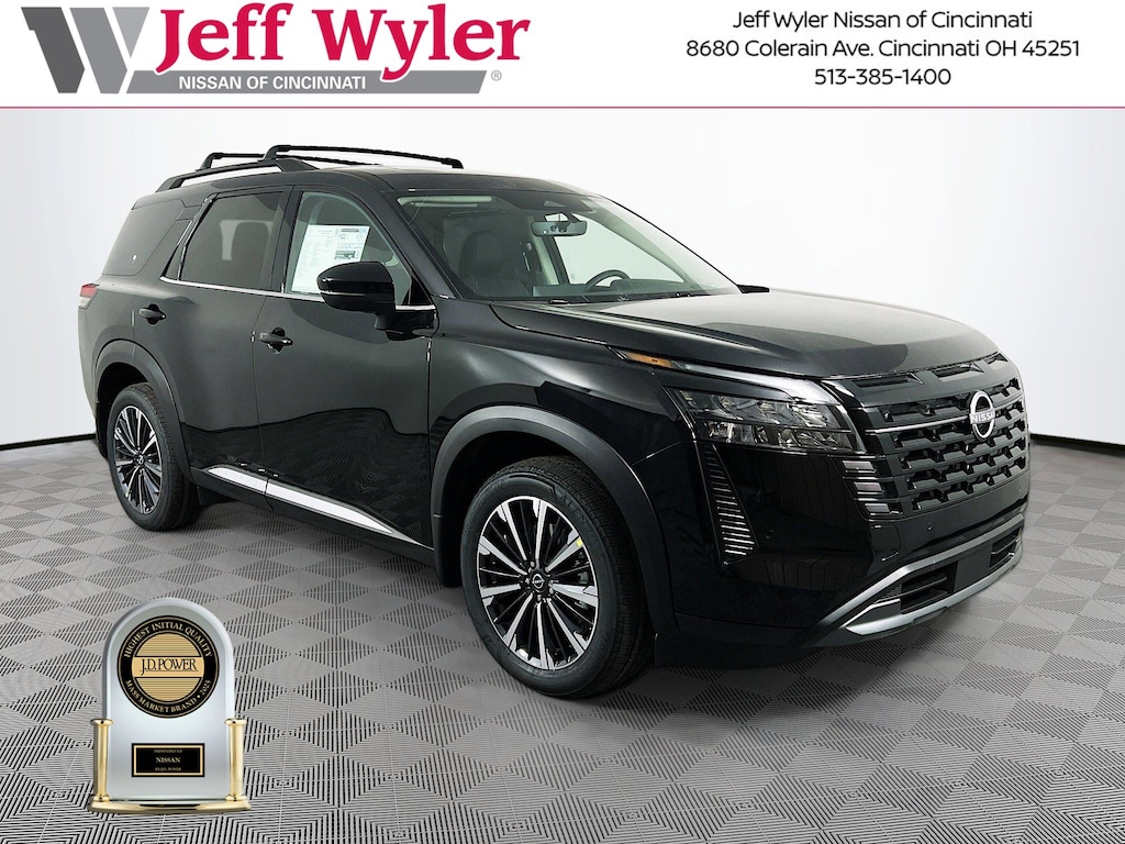 $5,443 off MSRP! Super Black 2026 Nissan Pathfinder Platinum 4WD 9-Speed Automatic Jeff Wyler Nissan of Cincinnati is pumped up to offer this outstanding 2026 Nissan Pathfinder Platinum in Super Black. Well equipped with: Cargo Package (Cargo Area Protector, Cargo Net, and First Aid), 4WD, 13 Speakers, 3rd row seats: bench, 4-Piece Black Splash Guards, 4-Wheel Disc Brakes, ABS brakes, Air Conditioning, Alloy wheels, AM/FM radio: SiriusXM w/360L, Auto High-beam Headlights, Auto tilt-away steering wheel, Auto-dimming Rear-View mirror, Automatic temperature control, Bench Seat Carpeted Floor Mats, Bodyside moldings, Bose Premium Audio System, Brake assist, Bumpers: body-color, Climate Controlled Front Bucket Seats, Cross Bars, Delay-off headlights, Driver door bin, Driver vanity mirror, Dual front impact airbags, Dual front side impact airbags, Electronic Stability Control, Emergency communication system: NissanConnect Services, Four wheel independent suspension, Front anti-roll bar, Front Bucket Seats, Front Center Armrest, Front dual zone A/C, Front reading lights, Fully automatic headlights, Garage door transmitter: HomeLink, Heads-Up Display, Heated door mirrors, Heated front seats, Heated rear seats, Heated steering wheel, Illuminated entry, Knee airbag, Low tire pressure warning, Memory seat, NissanConnect featuring Apple CarPlay and Android Auto, Occupant sensing airbag, Outside temperature display, Overhead airbag, Overhead console, Panic alarm, Passenger door bin, Passenger vanity mirror, Power door mirrors, Power driver seat, Power Liftgate, Power moonroof, Power passenger seat, Power steering, Power windows, Radio data system, Radio: AM/FM Audio System with NissanConnect, Rain sensing wipers, Rear air conditioning, Rear anti-roll bar, Rear reading lights, Rear seat center armrest, Rear side impact airbag, Rear window defroster, Rear window wiper, Reclining 3rd row seat, Remote keyless entry, Security system, Semi-Aniline Leather-Appointed Seating Surfaces, Speed control, Speed-sensing steering, Speed-Sensitive Wipers, Split folding rear seat, Spoiler, Steering wheel memory, Steering wheel mounted audio controls, Tachometer, Telescoping steering wheel, Tilt steering wheel, Traction control, Trip computer, Turn signal indicator mirrors, Variably intermittent wipers, Ventilated front seats, and Wheels: 20" Machined Alloy. 3.5L V6 DOHC 4WD.Recent Arrival!Wyler Family First Package Includes: NanoCure Appearance Protection: Exterior & Interior Chemical Sealant Applied to Protect Against Environmental Hazards (7 Year Warranty Coverage). Pulse- Rear end Collision Avoidance System Theft Deterrent Strategy gives you 5 Years of Coverage against vehicle Theft, Offering up to a $5,000 benefit. Price includes: $2000 - Nissan Customer Cash. Exp. 03/31/2026