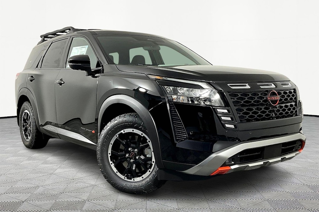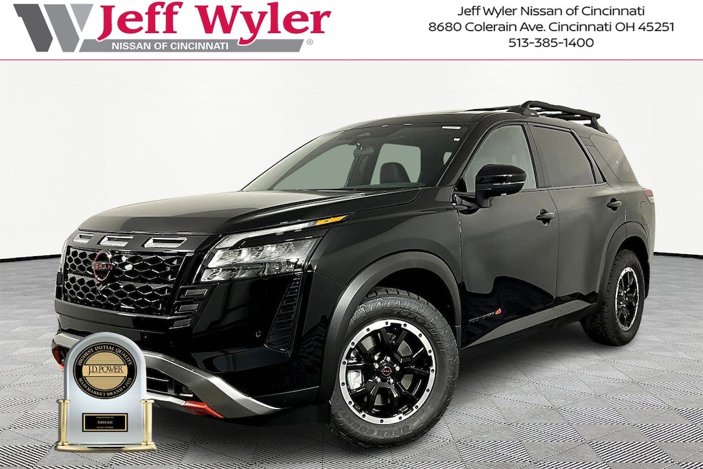 $5,183 off MSRP! Super Black 2026 Nissan Pathfinder Rock Creek 4WD 9-Speed Automatic Jeff Wyler Nissan of Cincinnati is pumped up to offer this beautiful 2026 Nissan Pathfinder Rock Creek in Super Black. Well equipped with: Rock Creek Premium Package (2nd-Row Climate Control Panel, Heated Steering Wheel, and Panoramic Moonroof), 4WD, 18" Unique Alloy Wheels, 2nd-Row Captain Chairs, 2nd-Row Removable Centre Console, 3rd row seats: bench, 4-Piece Black Splash Guards, 4-Wheel Disc Brakes, 6 Speakers, ABS brakes, Air Conditioning, Alloy wheels, AM/FM radio: SiriusXM w/360L, Auto High-beam Headlights, Automatic temperature control, Brake assist, Delay-off headlights, Driver door bin, Driver vanity mirror, Dual front impact airbags, Dual front side impact airbags, Electronic Stability Control, Emergency communication system: NissanConnect Services, Four wheel independent suspension, Front anti-roll bar, Front Bucket Seats, Front Center Armrest, Front dual zone A/C, Front fog lights, Front reading lights, Fully automatic headlights, Garage door transmitter: myQ Connected Garage, Heated door mirrors, Heated Front Bucket Seats, Heated front seats, Illuminated entry, Knee airbag, Leatherette and Cloth Seating Surfaces, Low tire pressure warning, NissanConnect featuring Apple CarPlay and Android Auto, Occupant sensing airbag, Outside temperature display, Overhead airbag, Overhead console, Panic alarm, Passenger door bin, Passenger vanity mirror, Power door mirrors, Power driver seat, Power Liftgate, Power steering, Power windows, Radio data system, Radio: AM/FM Audio System with NissanConnect, Rear air conditioning, Rear anti-roll bar, Rear reading lights, Rear side impact airbag, Rear window defroster, Rear window wiper, Reclining 3rd row seat, Remote keyless entry, Roof rack, Security system, Speed control, Speed-sensing steering, Split folding rear seat, Spoiler, Steering wheel mounted audio controls, Tachometer, Telescoping steering wheel, Tilt steering wheel, Traction control, Trip computer, Turn signal indicator mirrors, and Variably intermittent wipers. 3.5L V6 DOHC 4WD.Recent Arrival!Wyler Family First Package Includes: NanoCure Appearance Protection: Exterior & Interior Chemical Sealant Applied to Protect Against Environmental Hazards (7 Year Warranty Coverage). Pulse- Rear end Collision Avoidance System Theft Deterrent Strategy gives you 5 Years of Coverage against vehicle Theft, Offering up to a $5,000 benefit. Price includes: $2000 - Nissan Customer Cash. Exp. 03/31/2026