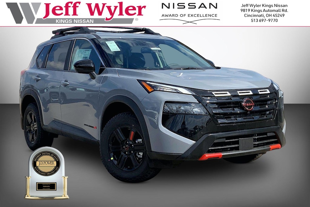 $5,369 off MSRP! Jeff Wyler Kings Nissan is very proud to offer this great-looking 2026 Nissan Rogue Rock Creek in Boulder Gray Pearl. Well equipped with: AWD, 4-Wheel Disc Brakes, 6 Speakers, ABS brakes, Air Conditioning, Alloy wheels, AM/FM radio, Apple CarPlay/Android Auto, Auto High-beam Headlights, Automatic temperature control, Black Splash Guards (set of 4), Brake assist, Delay-off headlights, Driver door bin, Driver vanity mirror, Dual front impact airbags, Dual front side impact airbags, Electronic Stability Control, Emergency communication system: NissanConnect Services, Four wheel independent suspension, Front anti-roll bar, Front Bucket Seats, Front Center Armrest, Front dual zone A/C, Front reading lights, Fully automatic headlights, Heated door mirrors, Heated Front Bucket Seats, Heated front seats, Illuminated entry, Knee airbag, Leatherette and Ballistic Nylon Seating, Low tire pressure warning, Occupant sensing airbag, Outside temperature display, Overhead airbag, Overhead console, Panic alarm, Passenger door bin, Passenger vanity mirror, Power door mirrors, Power driver seat, Power Liftgate, Power steering, Power windows, Premium Paint, Radio data system, Radio: AM/FM NissanConnect, Rear anti-roll bar, Rear Parking Sensors, Rear seat center armrest, Rear side impact airbag, Rear window defroster, Rear window wiper, Remote keyless entry, Roof rack, Speed control, Speed-sensing steering, Speed-Sensitive Wipers, Split folding rear seat, Spoiler, Steering wheel mounted audio controls, Tachometer, Telescoping steering wheel, Tilt steering wheel, Traction control, Trip computer, USB Charging Cable Set, Variably intermittent wipers, and Wheels: 17" Dark Painted Alloy. 27/32 City/Highway MPGWyler Family First Package Includes: NanoCure Appearance Protection: Exterior & Interior Chemical Sealant Applied to Protect Against Environmental Hazards (7 Year Warranty Coverage). Pulse- Rear end Collision Avoidance System Theft Deterrent Strategy gives you 5 Years of Coverage against vehicle Theft, Offering up to a $5,000 benefit. Used vehicles 10 years of age or newer with less than 100,000 miles are eligible for the Wyler Assurance Program, but eligible vehicles must pass our reconditioning process and multi-point inspection. Provided the vehicle passes inspection, vehicles will be eligible for the 6 month/6,000 mile limited warranty. The 6 month/6,000 mile limited warranty is NOT available on AS-IS vehicles, wholesale vehicles, lease buyback/pass-thru vehicles or un-inspected vehicles. Note that this program can also apply to vehicles where the remaining factory coverage is less than 6 months or 6,000 miles. Please check the Federal Trade Commission (FTC) Buyers guide on the vehicle for full details as to whether or not warranty coverage may apply. Contact Dealer for additional details. The Wyler Assurance 6 month/6,000 Mile limited warranty ends 6 months from the date of the Retail Purchase Agreement (BUYERS ORDER) or when the vehicle's odometer registers 6,000 additional miles to the mileage listed on the BUYERS ORDER, whichever comes first. Your Deductible - The warranty holder on your contract pays the first $100 of each covered repair. Price includes: $3500 - Nissan Customer Cash. Exp. 05/04/2026