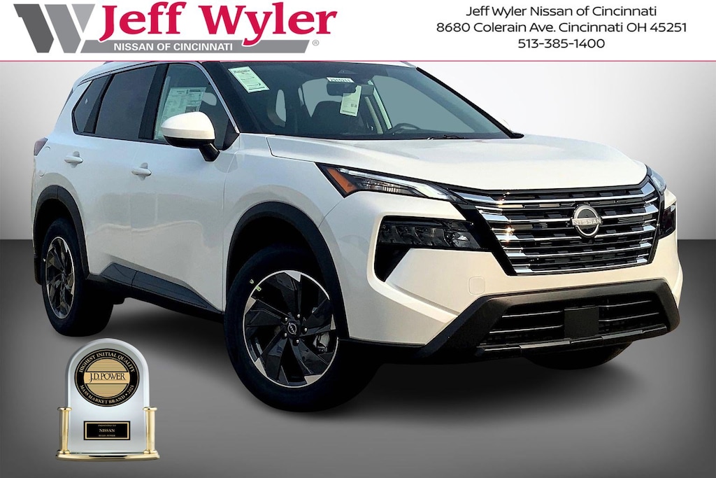 Everest White Pearl Tricoat 2026 Nissan Rogue SV AWD CVT with Xtronic Jeff Wyler Nissan of Cincinnati is very proud to offer this handsome-looking 2026 Nissan Rogue SV in Everest White Pearl Tricoat. Well equipped with: Cold Weather Package (Heated Front Seats), SV Premium Package (Leatherette Door Trim Inserts with Stitch, Panoramic Moonroof, Prima-Tex Leatherette Seat Trim, Rear Door Sunshades, Rear Personal Lights, and Silver Painted Roof Rails), AWD, 4-Wheel Disc Brakes, 6 Speakers, ABS brakes, Air Conditioning, Alloy wheels, AM/FM radio: Sirius, Apple CarPlay/Android Auto, Auto High-beam Headlights, Automatic temperature control, Black Splash Guards (set of 4), Brake assist, Bumpers: body-color, Chrome Rear Bumper Protector, Cloth Seat Trim with Patterned Inserts, Delay-off headlights, Driver door bin, Driver vanity mirror, Dual front impact airbags, Dual front side impact airbags, Electronic Stability Control, Emergency communication system: NissanConnect Services, Floor Mats with 1-Piece Cargo Area Protector, Four wheel independent suspension, Front anti-roll bar, Front Bucket Seats, Front Center Armrest, Front dual zone A/C, Front reading lights, Fully automatic headlights, Heated door mirrors, Illuminated entry, Knee airbag, Low tire pressure warning, Occupant sensing airbag, Outside temperature display, Overhead airbag, Overhead console, Panic alarm, Passenger door bin, Passenger vanity mirror, Power door mirrors, Power driver seat, Power Liftgate, Power steering, Power windows, Premium Paint, Radio data system, Radio: AM/FM NissanConnect, Rear anti-roll bar, Rear seat center armrest, Rear side impact airbag, Rear window defroster, Rear window wiper, Remote keyless entry, Speed control, Speed-sensing steering, Speed-Sensitive Wipers, Split folding rear seat, Spoiler, Steering wheel mounted audio controls, Tachometer, Telescoping steering wheel, Tilt steering wheel, Traction control, Trip computer, Variably intermittent wipers, and Wheels: 18" Dark Painted Machine Finished Alloy. 1.5L DOHC AWD.Recent Arrival! 28/35 City/Highway MPGWyler Family First Package Includes: NanoCure Appearance Protection: Exterior & Interior Chemical Sealant Applied to Protect Against Environmental Hazards (7 Year Warranty Coverage). Pulse- Rear end Collision Avoidance System Theft Deterrent Strategy gives you 5 Years of Coverage against vehicle Theft, Offering up to a $5,000 benefit. Price includes: $2500 - Nissan Customer Cash. Exp. 01/05/2026 $500 - Nissan MY26 Rogue and Murano Customer Cash. Exp. 01/05/2026