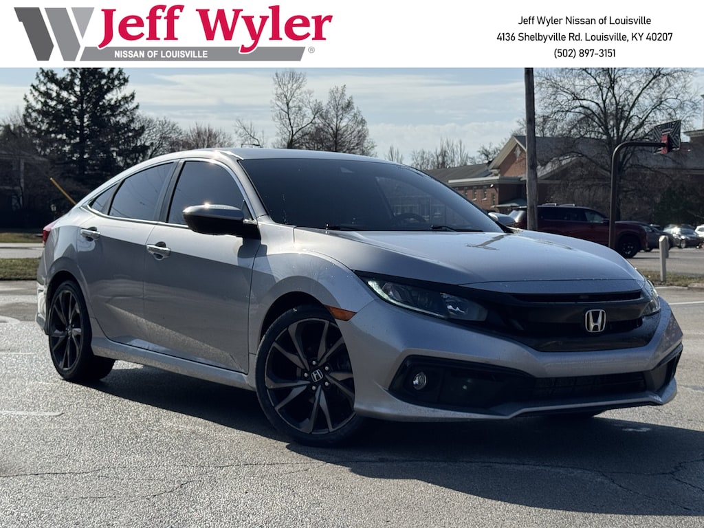 Jeff Wyler Nissan of Louisville is pleased to offer this charming 2019 Honda Civic Sport in Lunar Silver Metallic. ** BLUETOOTH **, ** BACKUP CAMERA **, ** PUSH-BUTTON START **, ** GREAT FUEL ECONOMY **, and ** HOME DELIVERY OPTIONS! ** Gray w/Cloth Seat Trim, 4-Wheel Disc Brakes, 8 Speakers, ABS brakes, Air Conditioning, Alloy wheels, AM/FM radio, Apple CarPlay/Android Auto, Auto High-beam Headlights, Automatic temperature control, Brake assist, Bumpers: body-color, Cloth Seat Trim, Delay-off headlights, Driver door bin, Driver vanity mirror, Dual front impact airbags, Dual front side impact airbags, Electronic Stability Control, Emergency communication system: HondaLink, Exterior Parking Camera Rear, Forward collision: Collision Mitigation Braking System (CMBS) + FCW mitigation, Four wheel independent suspension, Front anti-roll bar, Front Bucket Seats, Front Center Armrest, Front fog lights, Front reading lights, Fully automatic headlights, Illuminated entry, Lane departure: Lane Keeping Assist System (LKAS) active, Leather Shift Knob, Low tire pressure warning, Occupant sensing airbag, Outside temperature display, Overhead airbag, Panic alarm, Passenger door bin, Passenger vanity mirror, Power door mirrors, Power steering, Power windows, Radio data system, Radio: 180-Watt AM/FM Audio System, Rear anti-roll bar, Rear window defroster, Remote keyless entry, Security system, Speed control, Speed-sensing steering, Split folding rear seat, Spoiler, Steering wheel mounted audio controls, Tachometer, Telescoping steering wheel, Tilt steering wheel, Traction control, Trip computer, and Wheels: 18" Alloy w/Gloss Black Inserts Our PRE-OWNED vehicles are put through a rigorous 167- POINT QUALITY ASSURANCE INSPECTION along with an average amount of over $1,400.00 SPENT to recondition each vehicle so we can be sure to deliver you the highest quality vehicle like you deserve! ***ONLINE PRICE DOES NOT INCLUDE WYLER FAMILY FIRST PACKAGE*** Stop by 4136 Shelbyville Road to see for yourself, or give us a call @ 502-897-3151 to schedule your test drive! ** BLUETOOTH **, ** BACKUP CAMERA **, ** PUSH-BUTTON START **, ** GREAT FUEL ECONOMY **, Gray w/Cloth Seat Trim, 4-Wheel Disc Brakes, 8 Speakers, ABS brakes, Air Conditioning, Alloy wheels, AM/FM radio, Apple CarPlay/Android Auto, Auto High-beam Headlights, Automatic temperature control, Brake assist, Bumpers: body-color, Cloth Seat Trim, Delay-off headlights, Driver door bin, Driver vanity mirror, Dual front impact airbags, Dual front side impact airbags, Electronic Stability Control, Emergency communication system: HondaLink, Exterior Parking Camera Rear, Forward collision: Collision Mitigation Braking System (CMBS) + FCW mitigation, Four wheel independent suspension, Front anti-roll bar, Front Bucket Seats, Front Center Armrest, Front fog lights, Front reading lights, Fully automatic headlights, Illuminated entry, Lane departure: Lane Keeping Assist System (LKAS) active, Leather Shift Knob, Low tire pressure warning, Occupant sensing airbag, Outside temperature display, Overhead airbag, Panic alarm, Passenger door bin, Passenger vanity mirror, Power door mirrors, Power steering, Power windows, Radio data system, Radio: 180-Watt AM/FM Audio System, Rear anti-roll bar, Rear window defroster, Remote keyless entry, Security system, Speed control, Speed-sensing steering, Split folding rear seat, Spoiler, Steering wheel mounted audio controls, Tachometer, Telescoping steering wheel, Tilt steering wheel, Traction control, Trip computer, Wheels: 18" Alloy w/Gloss Black Inserts.