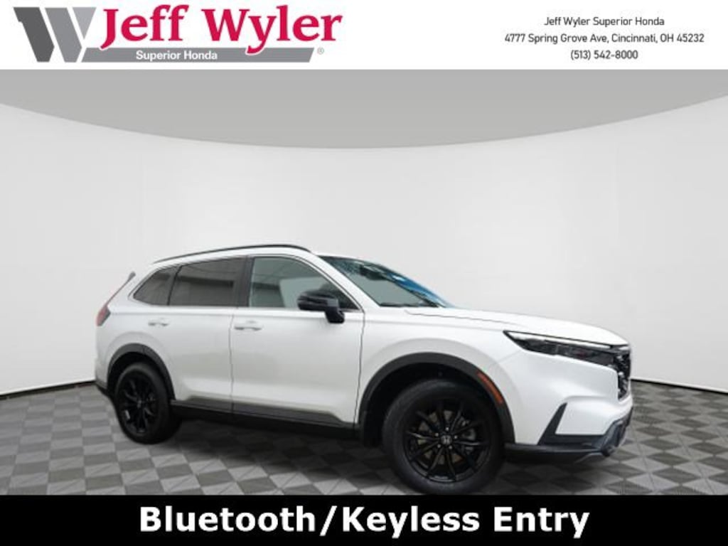 Jeff Wyler Superior Honda is delighted to offer this fantastic-looking 2023 Honda CR-V Hybrid Sport in White. BLUETOOTH, HONDA CERTIFIED!, RECENT SUPERIOR TRADE, and BOUGHT, SERVICED AND TRADED AT SUPERIOR CR-V Hybrid Sport, HondaTrue Certified Certified, 4D Sport Utility, 2.0L I4 DOHC 16V, eCVT, AWD, White, Black Cloth, 4-Wheel Disc Brakes, 4.438 Axle Ratio, 6 Speakers, ABS brakes, Adaptive Cruise Control: Adaptive Cruise Control (ACC) with Low-Speed Follow, Air Conditioning, Alloy wheels, Apple CarPlay/Android Auto, Auto High-beam Headlights, Automatic temperature control, Brake assist, Bumpers: body-color, Cloth Seat Trim, Compass, Delay-off headlights, Driver door bin, Driver vanity mirror, Dual front impact airbags, Dual front side impact airbags, Electronic Stability Control, Exterior Parking Cameras, Four wheel independent suspension, Front anti-roll bar, Front Bucket Seats, Front Center Armrest, Front dual zone A/C, Front reading lights, Fully automatic headlights, Heated door mirrors, Heated Front Bucket Seats, Heated front seats, Illuminated entry, Knee airbag, Leather Shift Knob, Leather steering wheel, Low tire pressure warning, Occupant sensing airbag, Outside temperature display, Overhead airbag, Overhead console, Panic alarm, Passenger door bin, Passenger vanity mirror, Power door mirrors, Power driver seat, Power moonroof, Power steering, Power windows, Radio data system, Radio: 240-Watt AM/FM Audio System, Rear anti-roll bar, Rear reading lights, Rear seat center armrest, Rear side impact airbag, Rear window defroster, Rear window wiper, Remote keyless entry, Security system, Speed control, Speed-sensing steering, Speed-Sensitive Wipers, Split folding rear seat, Spoiler, Steering wheel mounted audio controls, Telescoping steering wheel, Tilt steering wheel, Traction control, Trip computer, Turn signal indicator mirrors, Variably intermittent wipers, and Wheels: 18" Berlina Black Alloy Our PRE-OWNED vehicles are put through a rigorous 167- POINT QUALITY ASSURANCE INSPECTION along with an average amount of over $1,400.00 SPENT to recondition each vehicle so we can be sure to deliver you the highest quality vehicle like you deserve! ***ONLINE PRICE DOES NOT INCLUDE WYLER FAMILY FIRST PACKAGE*** Stop by 4777 Spring Grove Ave. Road to see for yourself, or give us a call @ 283-209-1858 to schedule your test drive!Vehicle pricing includes all offers and incentives. Due to limited inventory, offers and pricing are all subject to change. Tax, Title, Tags and $387 doc fees are not included in vehicle price shown and must be paid by the purchaser. Doc fees vary by location. Financing w/approved credit. Mileage est. Based on current EPA estimates reflecting new EPA methods beginning w/ 2008 models. For comparison only. Do not compare to pre 2008 models. Actual mileage may vary based on how you drive and maintain your vehicle. Information on this site includes 3rd party data believed to be reliable, subject to change without notice. Jeff Wyler reserves the right to correct any errors and/or omissions in the compilation or presentation of this data and makes no representations express or implied to any prospective purchaser as to the vehicle's condition, specifications, history, equipment or equipment function, price or warranties. This vehicle may be subject to an open recall that has not been repaired. Please consult safercar.gov for more information on the current status. It is the responsibility of purchaser to confirm any data prior to purchase. Other than MSRP, all offers only apply to this vehicle and are subject to change. Vehicle prices are subject to change and all vehicles are subject to prior sale and may not be available when you are ready to purchase. Prices listed on any other website may not be accepted. Dealership advertises the sale of vehicles through a number of different channels and cannot always control when they are updated. Wyler? and Jeff Wyler? are registered trademarks of the Jeff Wyler Automot