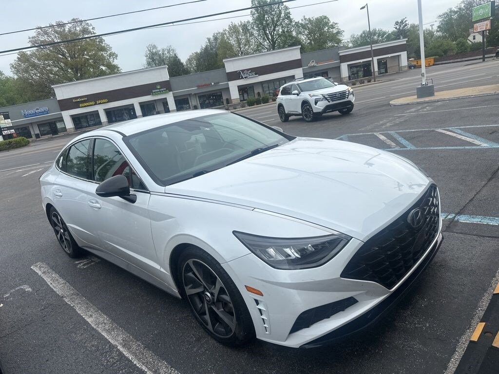 Jeff Wyler Nissan of Louisville is proud to offer this great-looking 2021 Hyundai Sonata SEL Plus in Quartz White. ** BLUETOOTH **, ** BACKUP CAMERA **, ** LEATHER INTERIOR **, ** HEATED SEATS **, ** PUSH-BUTTON START **, ** GREAT FUEL ECONOMY **, ** EXCELLENT SERVICE HISTORY **, ** LOCALLY OWNED **, and ** HOME DELIVERY OPTIONS! ** Option Group 01, Black w/Leather Seating Surfaces, 4-Wheel Disc Brakes, 6 Speakers, ABS brakes, Air Conditioning, Alloy wheels, AM/FM radio: SiriusXM, Apple CarPlay & Android Auto, Auto High-beam Headlights, Auto-dimming Rear-View mirror, Automatic temperature control, Brake assist, Bumpers: body-color, Carpeted Floor Mats, Delay-off headlights, Dinamica Suede/Leatherette Seating Surfaces, Driver door bin, Driver vanity mirror, Dual front impact airbags, Dual front side impact airbags, Electronic Stability Control, Emergency communication system: Blue Link Connected Car Service (3-year complimentary subscription), Exterior Parking Camera Rear, Four wheel independent suspension, Front anti-roll bar, Front Bucket Seats, Front Center Armrest, Front dual zone A/C, Front reading lights, Fully automatic headlights, Garage door transmitter: HomeLink, Heated door mirrors, Heated Front Bucket Seats, Heated front seats, Illuminated entry, Knee airbag, Low tire pressure warning, Occupant sensing airbag, Outside temperature display, Overhead airbag, Overhead console, Panic alarm, Passenger door bin, Passenger vanity mirror, Power door mirrors, Power driver seat, Power steering, Power windows, Radio data system, Radio: AM/FM/MP3/HD/SiriusXM Display Audio, Rear anti-roll bar, Rear seat center armrest, Rear side impact airbag, Rear window defroster, Remote keyless entry, Security system, Speed control, Speed-sensing steering, Speed-Sensitive Wipers, Split folding rear seat, Steering wheel mounted audio controls, Tachometer, Telescoping steering wheel, Tilt steering wheel, Traction control, Trip computer, Turn signal indicator mirrors, Variably intermittent wipers, Wheels: 19 x 8.0J Aluminum Alloy, and Wireless Device Charging Our PRE-OWNED vehicles are put through a rigorous 167- POINT QUALITY ASSURANCE INSPECTION along with an average amount of over $1,400.00 SPENT to recondition each vehicle so we can be sure to deliver you the highest quality vehicle like you deserve! ***ONLINE PRICE DOES NOT INCLUDE WYLER FAMILY FIRST PACKAGE*** Stop by 4136 Shelbyville Road to see for yourself, or give us a call @ 502-897-3151 to schedule your test drive! ** BLUETOOTH **, ** BACKUP CAMERA **, ** LEATHER INTERIOR **, ** HEATED SEATS **, ** PUSH-BUTTON START **, ** GREAT FUEL ECONOMY **, ** EXCELLENT SERVICE HISTORY **, ** LOCALLY OWNED **, Black w/Leather Seating Surfaces, 4-Wheel Disc Brakes, 6 Speakers, ABS brakes, Air Conditioning, Alloy wheels, AM/FM radio: SiriusXM, Apple CarPlay & Android Auto, Auto High-beam Headlights, Auto-dimming Rear-View mirror, Automatic temperature control, Brake assist, Bumpers: body-color, Carpeted Floor Mats, Delay-off headlights, Dinamica Suede/Leatherette Seating Surfaces, Driver door bin, Driver vanity mirror, Dual front impact airbags, Dual front side impact airbags, Electronic Stability Control, Emergency communication system: Blue Link Connected Car Service (3-year complimentary subscription), Exterior Parking Camera Rear, Four wheel independent suspension, Front anti-roll bar, Front Bucket Seats, Front Center Armrest, Front dual zone A/C, Front reading lights, Fully automatic headlights, Garage door transmitter: HomeLink, Heated door mirrors, Heated Front Bucket Seats, Heated front seats, Illuminated entry, Knee airbag, Low tire pressure warning, Occupant sensing airbag, Option Group 01, Outside temperature display, Overhead airbag, Overhead console, Panic alarm, Passenger door bin, Passenger vanity mirror, Power door mirrors, Power driver seat, Power steering, Power windows, Radio data system, Radio: AM/FM/MP3/HD/SiriusXM Display Audio, Rear anti-roll bar, Rear seat center armrest, Re