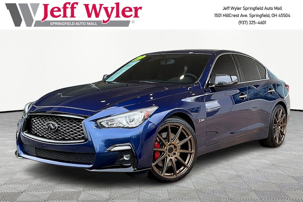 Jeff Wyler Springfield Auto Mall is honored to offer this charming 2019 INFINITI Q50 Red Sport 400 in . Well equipped with: 4-Wheel Disc Brakes, 6 Speakers, ABS brakes, Adaptive suspension, Air Conditioning, Alloy wheels, AM/FM radio: SiriusXM, Anti-whiplash front head restraints, Auto-dimming Rear-View mirror, Automatic temperature control, Brake assist, Bumpers: body-color, CD player, Compass, Delay-off headlights, Driver door bin, Driver vanity mirror, Dual front impact airbags, Dual front side impact airbags, Electronic Stability Control, Emergency communication system: INFINITI Connection, Four wheel independent suspension, Front anti-roll bar, Front Bucket Seats, Front Center Armrest, Front dual zone A/C, Front fog lights, Front reading lights, Fully automatic headlights, Garage door transmitter: HomeLink, Heated door mirrors, Heated front seats, Heated Front Sport Seats, Heated steering wheel, Illuminated entry, Leather Shift Knob, Leather steering wheel, Low tire pressure warning, Navigation system: INFINITI InTouch Navigation, Occupant sensing airbag, Outside temperature display, Overhead airbag, Overhead console, Panic alarm, Passenger door bin, Passenger vanity mirror, Power door mirrors, Power driver seat, Power moonroof, Power passenger seat, Power steering, Power windows, Quilted Semi-Aniline Leather Seating Surfaces, Radio data system, Radio: INFINITI InTouch Navigation, Rain sensing wipers, Rear anti-roll bar, Rear reading lights, Rear seat center armrest, Rear window defroster, Remote keyless entry, Security system, Speed control, Speed-sensing steering, Speed-Sensitive Wipers, Split folding rear seat, Steering wheel mounted audio controls, Tachometer, Telescoping steering wheel, Tilt steering wheel, Traction control, Trip computer, Turn signal indicator mirrors, Variably intermittent wipers, and Wheels: 19" x 9" Aluminum-Alloy. Awards: * 2019 KBB.com 10 Best Luxury Cars Under $35,000 Ask about available certifications. Used vehicles 10 years of age or newer with less than 100,000 miles are eligible for the Wyler Assurance Program, but eligible vehicles must pass our reconditioning process and multi-point inspection. Provided the vehicle passes inspection, vehicles will be eligible for the 6 month/6,000 mile limited warranty. The 6 month/6,000 mile limited warranty is NOT available on AS-IS vehicles, wholesale vehicles, lease buyback/pass-thru vehicles or un-inspected vehicles. Note that this program can also apply to vehicles where the remaining factory coverage is less than 6 months or 6,000 miles. Please check the Federal Trade Commission (FTC) Buyers guide on the vehicle for full details as to whether or not warranty coverage may apply. Contact Dealer for additional details. The Wyler Assurance 6 month/6,000 Mile limited warranty ends 6 months from the date of the Retail Purchase Agreement (BUYERS ORDER) or when the vehicle's odometer registers 6,000 additional miles to the mileage listed on the BUYERS ORDER, whichever comes first. Your Deductible - The warranty holder on your contract pays the first $100 of each covered repair.