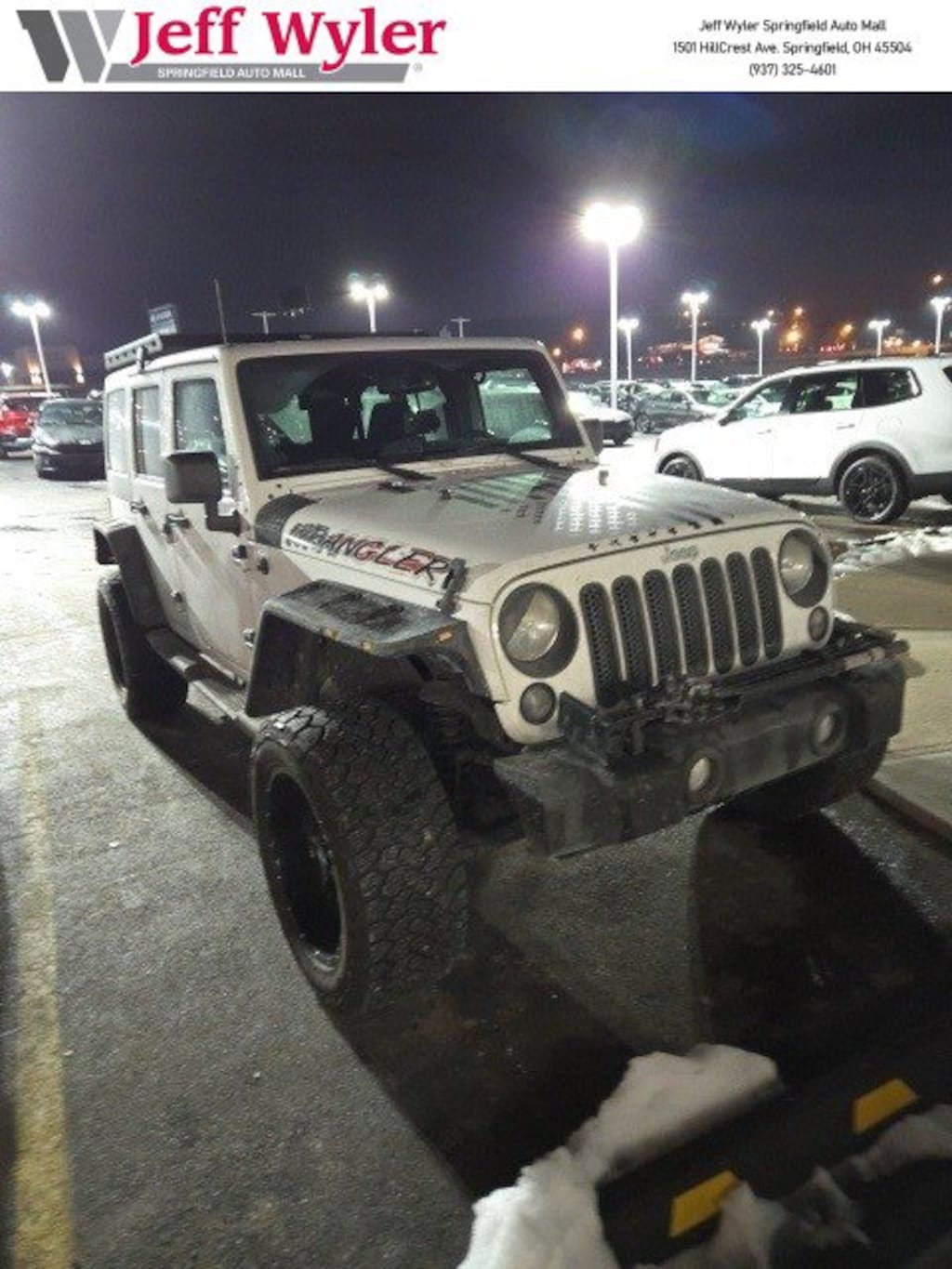 Jeff Wyler Springfield Auto Mall is delighted to offer this superb 2014 Jeep Wrangler Unlimited Sahara in Bright White Clearcoat. Well equipped with: Quick Order Package 24G, 18" x 7.5" Polished Satin Carbon Wheels, 3.21 Rear Axle Ratio, 4-Wheel Disc Brakes, 7 Speakers, ABS brakes, Air Conditioning, Alloy wheels, AM/FM radio, Audio Jack Input for Mobile Devices, Auto-dimming Rear-View mirror, Black 3-Piece Hard Top, Brake assist, CD player, Cloth Bucket Seats, Compass, Delete Sunrider Soft Top, Driver door bin, Driver vanity mirror, Dual front impact airbags, Electronic Stability Control, Freedom Panel Storage Bag, Front anti-roll bar, Front Bucket Seats, Front Center Armrest w/Storage, Front fog lights, Front reading lights, Fully automatic headlights, Heated door mirrors, Heavy Duty Suspension w/Gas Shocks, Illuminated entry, Integrated roll-over protection, Leather steering wheel, Low tire pressure warning, Manufacturer's Statement of Origin, Occupant sensing airbag, Outside temperature display, Panic alarm, Passenger door bin, Passenger vanity mirror, Power door mirrors, Power steering, Power windows, Radio data system, Radio: Uconnect 130 AM/FM/CD/MP3, Rear anti-roll bar, Rear Window Defroster, Rear Window Wiper/Washer, Remote keyless entry, Remote Start System, Security system, Speed control, Split folding rear seat, Steering wheel mounted audio controls, Sunrider Soft Top, Tachometer, Tilt steering wheel, Traction control, Trip computer, and Variably intermittent wipers. Ask about available certifications. Used vehicles 10 years of age or newer with less than 100,000 miles are eligible for the Wyler Assurance Program, but eligible vehicles must pass our reconditioning process and multi-point inspection. Provided the vehicle passes inspection, vehicles will be eligible for the 6 month/6,000 mile limited warranty. The 6 month/6,000 mile limited warranty is NOT available on AS-IS vehicles, wholesale vehicles, lease buyback/pass-thru vehicles or un-inspected vehicles. Note that this program can also apply to vehicles where the remaining factory coverage is less than 6 months or 6,000 miles. Please check the Federal Trade Commission (FTC) Buyers guide on the vehicle for full details as to whether or not warranty coverage may apply. Contact Dealer for additional details. The Wyler Assurance 6 month/6,000 Mile limited warranty ends 6 months from the date of the Retail Purchase Agreement (BUYERS ORDER) or when the vehicle's odometer registers 6,000 additional miles to the mileage listed on the BUYERS ORDER, whichever comes first. Your Deductible - The warranty holder on your contract pays the first $100 of each covered repair.