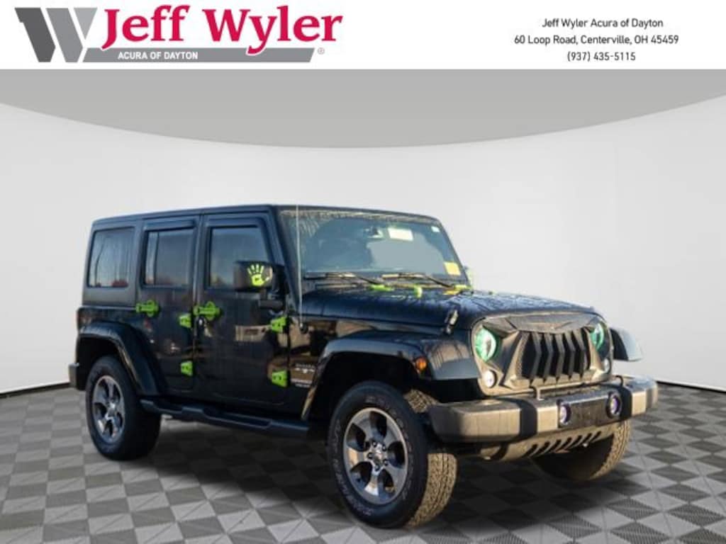 Jeff Wyler Acura of Dayton is very proud to offer this superb-looking and fun 2017 Jeep Wrangler Unlimited Sahara in Black Clearcoat. Connectivity Group (Remote USB Port, Tire Pressure Monitoring Display, Uconnect Voice Command w/Bluetooth, and Vehicle Information Center), Quick Order Package 24G (Body Color Appliques Front Bumper, Body Color Appliques Rear Bumper, and Body Color/Accent Color Grille), Trailer Tow Group (Class II Receiver Hitch and Trailer Tow w/4-Pin Connector Wiring), 18" x 7.5" Polished Satin Carbon Wheels, 3.21 Rear Axle Ratio, 4-Wheel Disc Brakes, 8 Speakers, ABS brakes, Air Conditioning, Alloy wheels, AM/FM radio: SiriusXM, Anti-Spin Differential Rear Axle, Audio Jack Input for Mobile Devices, Auto-dimming Rear-View mirror, Black 3-Piece Hard Top, Brake assist, CD player, Cloth Seats w/Adjustable Head Restraints, Compass, Delete Sunrider Soft Top, Driver door bin, Driver vanity mirror, Dual front impact airbags, Electronic Stability Control, Freedom Panel Storage Bag, Front anti-roll bar, Front Bucket Seats, Front Center Armrest w/Storage, Front fog lights, Front reading lights, Fully automatic headlights, Heated door mirrors, Heavy Duty Suspension w/Gas Shocks (DISC), Illuminated entry, Integrated roll-over protection, Leather steering wheel, Low tire pressure warning, MOPAR Slush Mats, Occupant sensing airbag, Outside temperature display, Panic alarm, Passenger door bin, Passenger vanity mirror, Power door mirrors, Power steering, Power windows, Radio data system, Radio: 130, Rear anti-roll bar, Rear Window Defroster, Rear Window Wiper/Washer, Remote keyless entry, Security system, Speed control, Split folding rear seat, Steering wheel mounted audio controls, Tachometer, Tilt steering wheel, Traction control, Trip computer, and Variably intermittent wipers Our PRE-OWNED vehicles are put through a rigorous 167- POINT QUALITY ASSURANCE INSPECTION along with an average amount of over $1,400.00 SPENT to recondition each vehicle so we can be sure to deliver you the highest quality vehicle like you deserve! ***ONLINE PRICE DOES NOT INCLUDE WYLER FAMILY FIRST PACKAGE*** Stop by 4136 Shelbyville Road to see for yourself, or give us a call @ 502-897-3151 to schedule your test drive!