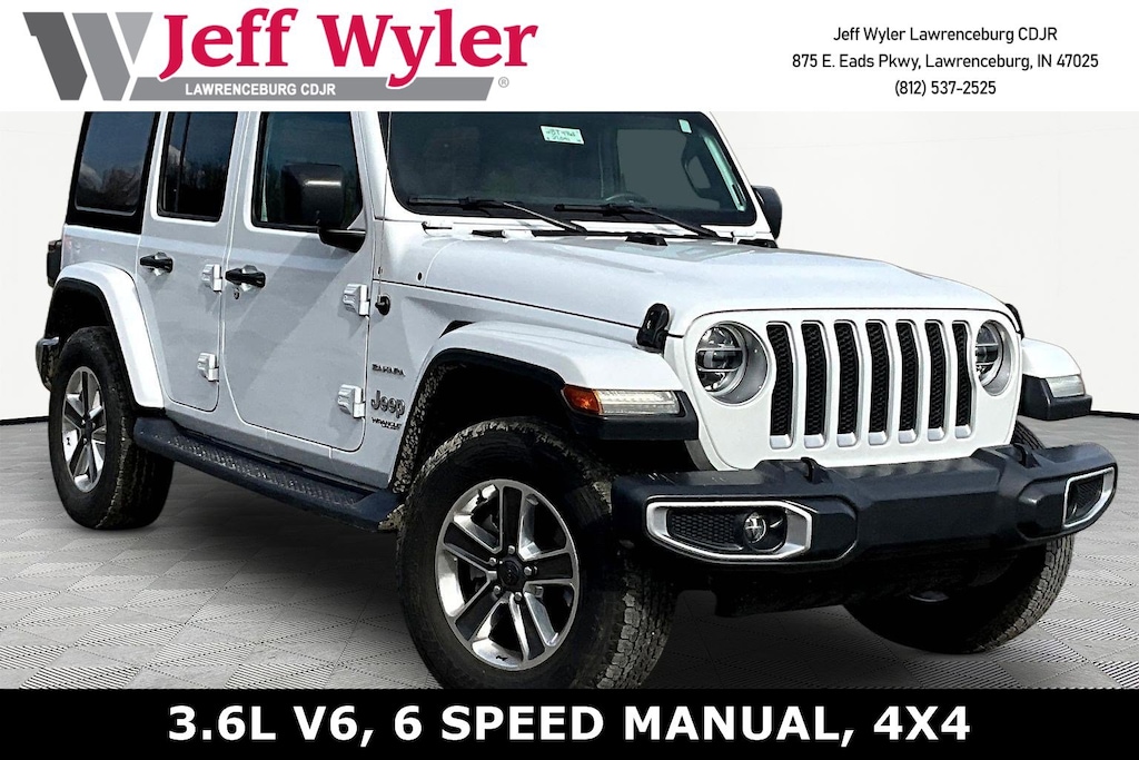 Jeff Wyler Chrysler Dodge Jeep of Lawrenceburg is pleased to offer this great-looking and fun 2018 Jeep Wrangler Unlimited Sahara in Bright White Clearcoat. LED Lighting Group (Daytime Running Lamps LED Accents, Front LED Fog Lamps, LED Reflector Headlamps, and LED Taillamps), Quick Order Package 23G, Trailer Tow & HD Electrical Group (240 Amp Alternator, 7 & 4 Pin Wiring Harness, 700 Amp Maintenance Free Battery, Auxiliary Switches, and Class II Receiver Hitch), 1-Yr SiriusXM Radio Service, 21.5 Gallon Fuel Tank (DISC), 3.45 Rear Axle Ratio, 4-Wheel Disc Brakes, 8 Speakers, ABS brakes, Air Conditioning, Alloy wheels, AM/FM radio: SiriusXM, Anti-Spin Differential Rear Axle, Apple CarPlay (DISC), Apple CarPlay/Android Auto, Automatic temperature control, Brake assist, Cloth Low-Back Bucket Seats, Compass, Delay-off headlights, Driver door bin, Driver vanity mirror, Dual front impact airbags, Dual front side impact airbags, Electronic Stability Control, For More Info, Call 800-643-2112, Front anti-roll bar, Front Bucket Seats, Front Center Armrest w/Storage, Front dual zone A/C, Front fog lights, Front reading lights, Fully automatic headlights, Garage door transmitter, Heated door mirrors, Heavy Duty Suspension w/Gas Shocks, Illuminated entry, Integrated roll-over protection, Leather steering wheel, Low tire pressure warning, MOPAR All-Weather Floor Mats, Non-Lock Fuel Cap w/o Discriminator, Occupant sensing airbag, Outside temperature display, Panic alarm, ParkView Rear Back-Up Camera, Passenger door bin, Passenger vanity mirror, Power door mirrors, Power steering, Power windows, Premium Black Sunrider Soft Top, Radio data system, Radio: Uconnect 4 w/7" Display, Rear anti-roll bar, Rear reading lights, Remote keyless entry, Security system, SiriusXM Satellite Radio (DISC), Speed control, Split folding rear seat, Steering wheel mounted audio controls, Tachometer, Telescoping steering wheel, Tilt steering wheel, Traction control, Trip computer, Variably intermittent wipers, Voltmeter, and Wheels: 18" x 7.5" Polished w/Gray Spokes Our PRE-OWNED vehicles are put through a rigorous 167- POINT QUALITY ASSURANCE INSPECTION along with an average amount of over $1,400.00 SPENT to recondition each vehicle so we can be sure to deliver you the highest quality vehicle like you deserve! ***ONLINE PRICE DOES NOT INCLUDE WYLER FAMILY FIRST PACKAGE*** Stop by 4136 Shelbyville Road to see for yourself, or give us a call @ 502-897-3151 to schedule your test drive! Ask about available certifications.