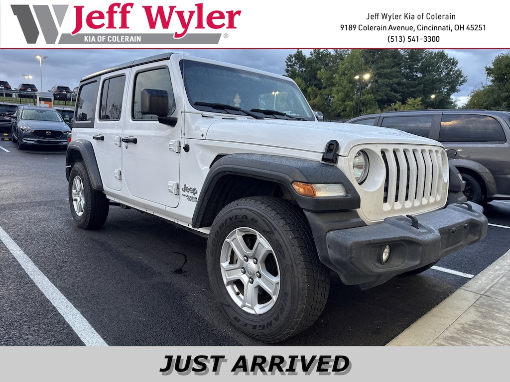 Jeff Wyler Kia of Colerain is delighted to offer this charming 2021 Jeep Wrangler Unlimited Sport S in Bright White Clearcoat. Quick Order Package 22S Sport S (Automatic Headlamps, Deep Tint Sunscreen Windows, Front 1-Touch Down Power Windows, Leather Wrapped Steering Wheel, Power Heated Mirrors, Remote Keyless Entry, Security Alarm, Speed Sensitive Power Locks, Sport S, Sun Visors w/Illuminated Vanity Mirrors, and Wheels: 17" x 7.5" Tech Silver Aluminum), Technology Group (7.0" Touchscreen Display, Air Conditioning w/Auto Temperature Control, Air Filtering, Apple CarPlay, Cluster 7.0" TFT Color Display, For More Info, Call 800-643-2112, Google Android Auto, GPS Antenna Input, Integrated Center Stack Radio, Radio: Uconnect 4 w/7" Display, SiriusXM Radio Service, SiriusXM Satellite Radio, and USB Host Flip), 3.45 Rear Axle Ratio, 4-Wheel Disc Brakes, 8 Speakers, ABS brakes, Air Conditioning, AM/FM radio, Aux Battery, Black 3-Piece Hard Top, Brake assist, Cloth Low-Back Bucket Seats, Compass, Delay-off headlights, Driver door bin, Driver vanity mirror, Dual front impact airbags, Dual front side impact airbags, Electronic Stability Control, Freedom Panel Storage Bag, Front anti-roll bar, Front Bucket Seats, Front Center Armrest w/Storage, Front fog lights, Front reading lights, Integrated roll-over protection, Low tire pressure warning, Manufacturer's Statement of Origin, No Soft Top, Non-Lock Fuel Cap w/o Discriminator, Normal Duty Suspension, Occupant sensing airbag, Outside temperature display, ParkView Rear Back-Up Camera, Passenger door bin, Passenger vanity mirror, Power steering, Radio data system, Radio: Uconnect 3 w/5" Display, Rear anti-roll bar, Rear reading lights, Rear Window Defroster, Rear Window Wiper/Washer, Speed control, Split folding rear seat, Steering wheel mounted audio controls, Stop-Start Dual Battery System, Tachometer, Telescoping steering wheel, Tilt steering wheel, Traction control, Trip computer, Variably intermittent wipers, and Wheels: 17" x 7.5" Black Steel Styled Our PRE-OWNED vehicles are put through a rigorous 167- POINT QUALITY ASSURANCE INSPECTION along with an average amount of over $1,400.00 SPENT to recondition each vehicle so we can be sure to deliver you the highest quality vehicle like you deserve! ***ONLINE PRICE DOES NOT INCLUDE WYLER FAMILY FIRST PACKAGE***