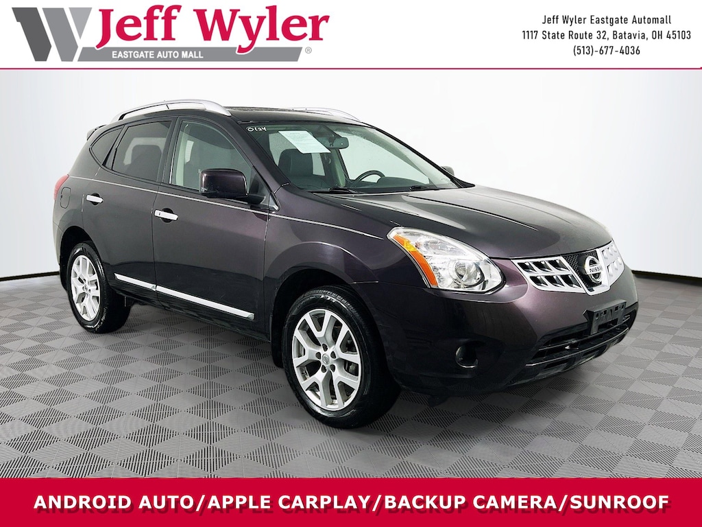 Jeff Wyler Eastgate Auto Mall is pumped up to offer this attractive 2013 Nissan Rogue SL in Black Amethyst Metallic. Well equipped with: SL Package (Around View Monitor, Auto-Dimming Inside Mirror, Automatic Temperature Control (ATC), Front Fog Lights, Heated Outside Mirrors, High-Intensity Discharge Xenon Headlights, Leather Wrapped Steering Wheel, Navigation System w/5" Color Touch Screen Display, and Power Sliding Glass Moonroof), 18" Aluminum Alloy Wheels, 4-Wheel Disc Brakes, 5.798 Axle Ratio, 8 Speakers, ABS brakes, Air Conditioning, Alloy wheels, AM/FM radio: SiriusXM, Anti-whiplash front head restraints, Auto-dimming Rear-View mirror, Automatic temperature control, Bodyside moldings, Brake assist, Bumpers: body-color, CD player, Delay-off headlights, Driver door bin, Driver vanity mirror, Dual front impact airbags, Dual front side impact airbags, Electronic Stability Control, Exterior Parking Camera Rear, Floor Mats & Cargo Area Protector, Four wheel independent suspension, Front anti-roll bar, Front Bucket Seats, Front Center Armrest, Front fog lights, Front reading lights, Fully automatic headlights, Heated door mirrors, Heated Front Bucket Seats, Heated front seats, High intensity discharge headlights: Xenon, Illuminated entry, Leather Shift Knob, Leather-Appointed Seat Trim, Low tire pressure warning, Navigation System, Occupant sensing airbag, Outside temperature display, Overhead airbag, Overhead console, Panic alarm, Passenger door bin, Passenger vanity mirror, Power door mirrors, Power driver seat, Power moonroof, Power steering, Power windows, Radio data system, Radio: AM/FM/CD Bose Audio System, Rear anti-roll bar, Rear Bumper Protector, Rear window defroster, Rear window wiper, Remote keyless entry, Retractable Cargo Cover, Roof rack: rails only, Security system, Speed control, Speed-sensing steering, Splash Guards, Split folding rear seat, Spoiler, Steering wheel mounted audio controls, Tachometer, Tilt steering wheel, Traction control, Trip computer, and Variably intermittent wipers. Clean CARFAX. Awards: * 2013 KBB.com 10 Best Used Compact SUVs Under $10,000 Ask about available certifications. Used vehicles 10 years of age or newer with less than 100,000 miles are eligible for the Wyler Assurance Program, but eligible vehicles must pass our reconditioning process and multi-point inspection. Provided the vehicle passes inspection, vehicles will be eligible for the 6 month/6,000 mile limited warranty. The 6 month/6,000 mile limited warranty is NOT available on AS-IS vehicles, wholesale vehicles, lease buyback/pass-thru vehicles or un-inspected vehicles. Note that this program can also apply to vehicles where the remaining factory coverage is less than 6 months or 6,000 miles. Please check the Federal Trade Commission (FTC) Buyers guide on the vehicle for full details as to whether or not warranty coverage may apply. Contact Dealer for additional details. The Wyler Assurance 6 month/6,000 Mile limited warranty ends 6 months from the date of the Retail Purchase Agreement (BUYERS ORDER) or when the vehicle's odometer registers 6,000 additional miles to the mileage listed on the BUYERS ORDER, whichever comes first. Your Deductible - The warranty holder on your contract pays the first $100 of each covered repair.