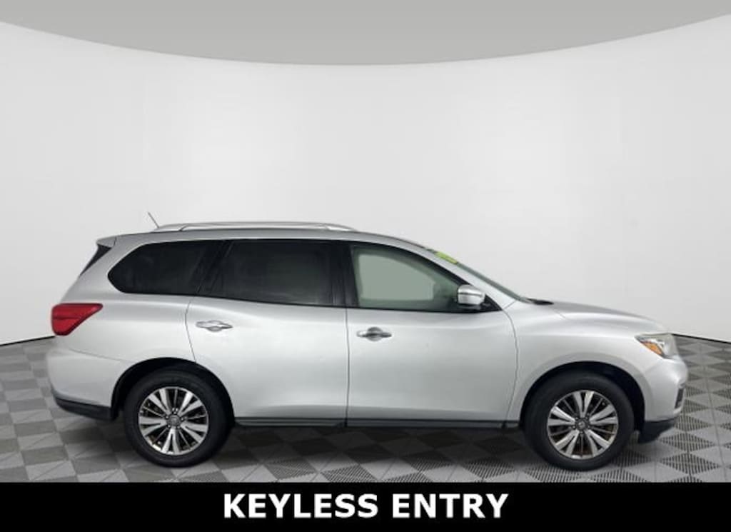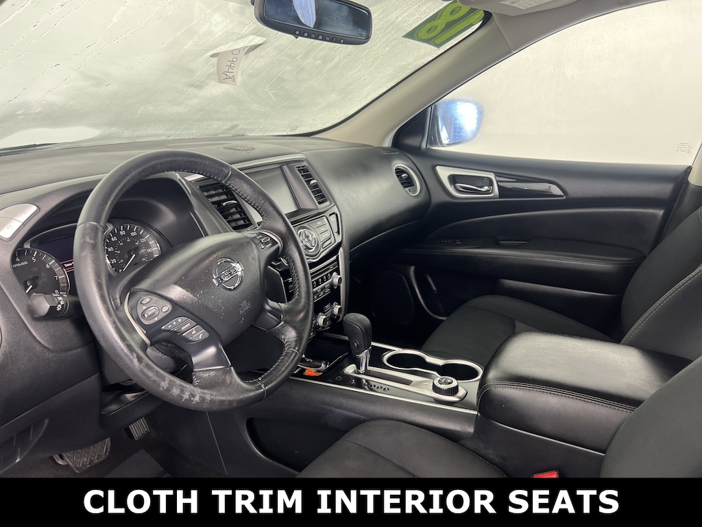 Jeff Wyler Hyundai of Fairfield is delighted to offer this great-looking 2018 Nissan Pathfinder SV in Brilliant Silver Metallic. Well equipped with: 4WD, Android Auto, Apple CarPlay, CALL NOW FOR YOUR VIP APPOINTMENT 513-870-9800, FULLY SERVICED w/RECORDS, GUARANTEED FINANCING!! NO MATTER YOUR SITUATION WE CAN GET AN APPROVAL!!, THE #1 Volume dealer in the region! Come see why for yourself Today!!, WE PAY MORE FOR YOUR TRADE!!, 3rd row seats: bench, 4-Wheel Disc Brakes, 5.25 Axle Ratio, 6 Speakers, ABS brakes, Air Conditioning, Alloy wheels, AM/FM radio: SiriusXM, Auto-dimming Rear-View mirror, Automatic temperature control, Blind Spot Warning, Brake assist, Bumpers: body-color, CD player, Cloth Seating Surfaces, Compass, Delay-off headlights, Driver door bin, Driver vanity mirror, Dual front impact airbags, Dual front side impact airbags, Electronic Stability Control, Four wheel independent suspension, Front anti-roll bar, Front Bucket Seats, Front Center Armrest, Front dual zone A/C, Front fog lights, Front reading lights, Fully automatic headlights, Garage door transmitter: HomeLink, Illuminated entry, Leather Shift Knob, Leather steering wheel, Low tire pressure warning, Occupant sensing airbag, Outside temperature display, Overhead airbag, Overhead console, Panic alarm, Passenger door bin, Passenger vanity mirror, Power door mirrors, Power driver seat, Power steering, Power windows, Radio data system, Radio: AM/FM/CD Audio System w/NissanConnect, Rear air conditioning, Rear anti-roll bar, Rear Parking Sensors, Rear reading lights, Rear seat center armrest, Rear window defroster, Rear window wiper, Reclining 3rd row seat, Remote keyless entry, Roof rack: rails only, Security system, Speed control, Speed-sensing steering, Speed-Sensitive Wipers, Split folding rear seat, Spoiler, Steering wheel mounted audio controls, Tachometer, Telescoping steering wheel, Tilt steering wheel, Traction control, Trip computer, Turn signal indicator mirrors, Variably intermittent wipers, and Wheels: 18" Machined Alloy w/Med Met Gray Finish. TO CHECK ON THE AVAILABILITY OF THIS VEHICLE REACH OUT TO ONE OF OUR TEAM MEMBERS!! ALSO SHOP ONLINE AT https://www.jeffwylerhyundaioffairfield.com/ Proudly Serving: Cincinnati, Dayton, Columbus, Louisville, Lexington, Indianapolis, Hamilton, Florence, Alexandria, Beavercreek, Springdale, West Chester, Monroe, Fairfield, Kenwood, Newport and all of greater Cincinnati Ohio, Indiana, and Northern Kentucky.