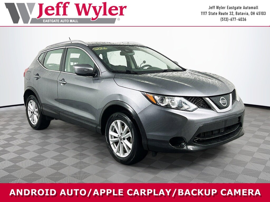Jeff Wyler Eastgate Auto Mall is proud to offer this handsome-looking 2019 Nissan Rogue Sport SV in Gun Metallic. Well equipped with: 4-Wheel Disc Brakes, 6 Speakers, 6.39 Axle Ratio, ABS brakes, Air Conditioning, Alloy wheels, AM/FM radio: SiriusXM, Automatic temperature control, Blind Spot Warning, Brake assist, Bumpers: body-color, CD player, Cloth Seat Trim, Delay-off headlights, Driver door bin, Driver vanity mirror, Dual front impact airbags, Dual front side impact airbags, Electronic Stability Control, Four wheel independent suspension, Front anti-roll bar, Front Bucket Seats, Front Center Armrest, Front dual zone A/C, Front reading lights, Fully automatic headlights, Illuminated entry, Low tire pressure warning, NissanConnect featuring Apple CarPlay and Android Auto, NissanConnect Services Powered By SiriusXM, Occupant sensing airbag, Outside temperature display, Overhead airbag, Overhead console, Panic alarm, Passenger door bin, Passenger vanity mirror, Power door mirrors, Power driver seat, Power steering, Power windows, Quick Comfort Heated Front Bucket Seats, Radio data system, Radio: AM/FM/CD/RDS/AUX NissanConnect, Rear anti-roll bar, Rear Parking Sensors, Rear seat center armrest, Rear window defroster, Rear window wiper, Remote keyless entry, Roof rack: rails only, Security system, Speed control, Speed-sensing steering, Speed-Sensitive Wipers, Split folding rear seat, Spoiler, Steering wheel mounted audio controls, Tachometer, Telescoping steering wheel, Tilt steering wheel, Traction control, Trip computer, Turn signal indicator mirrors, Variably intermittent wipers, and Wheels: 17" x 7.0" Aluminum Alloy. Clean CARFAX. Ask about available certifications. Used vehicles 10 years of age or newer with less than 100,000 miles are eligible for the Wyler Assurance Program, but eligible vehicles must pass our reconditioning process and multi-point inspection. Provided the vehicle passes inspection, vehicles will be eligible for the 6 month/6,000 mile limited warranty. The 6 month/6,000 mile limited warranty is NOT available on AS-IS vehicles, wholesale vehicles, lease buyback/pass-thru vehicles or un-inspected vehicles. Note that this program can also apply to vehicles where the remaining factory coverage is less than 6 months or 6,000 miles. Please check the Federal Trade Commission (FTC) Buyers guide on the vehicle for full details as to whether or not warranty coverage may apply. Contact Dealer for additional details. The Wyler Assurance 6 month/6,000 Mile limited warranty ends 6 months from the date of the Retail Purchase Agreement (BUYERS ORDER) or when the vehicle's odometer registers 6,000 additional miles to the mileage listed on the BUYERS ORDER, whichever comes first. Your Deductible - The warranty holder on your contract pays the first $100 of each covered repair.