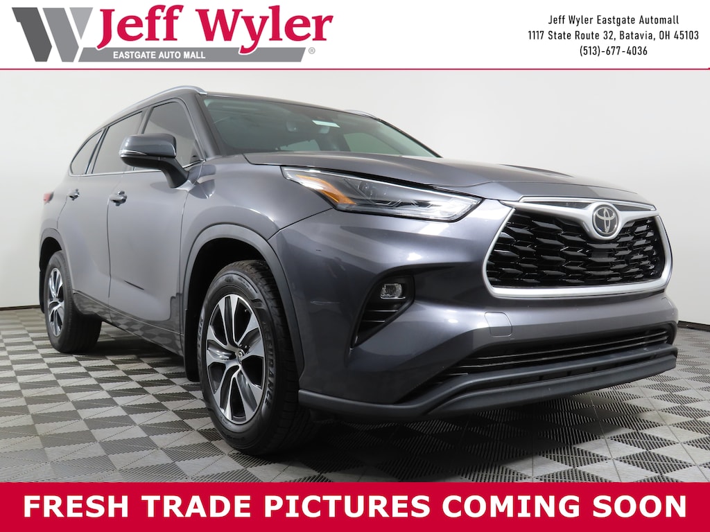 Jeff Wyler Eastgate Auto Mall is very proud to offer this fantastic-looking 2021 Toyota Highlander XLE in Gray. Well equipped with: 18" Machined Alloy Wheels, 3.003 Axle Ratio, 3rd row seats: split-bench, 4-Wheel Disc Brakes, 6 Speakers, ABS brakes, Air Conditioning, Alloy wheels, AM/FM radio: SiriusXM, Apple CarPlay/Android Auto, Auto High-beam Headlights, Auto-dimming Rear-View mirror, Automatic temperature control, Brake assist, Bumpers: body-color, Delay-off headlights, Driver door bin, Driver vanity mirror, Dual front impact airbags, Dual front side impact airbags, Electronic Stability Control, Emergency communication system: Safety Connect with 1-year trial, Exterior Parking Camera Rear, Four wheel independent suspension, Front anti-roll bar, Front Bucket Seats, Front Center Armrest, Front dual zone A/C, Front fog lights, Front reading lights, Fully automatic headlights, Garage door transmitter: HomeLink, Heated door mirrors, Heated Front Bucket Seats, Heated front seats, Illuminated entry, Knee airbag, Leather Shift Knob, Low tire pressure warning, Occupant sensing airbag, Outside temperature display, Overhead airbag, Overhead console, Panic alarm, Passenger door bin, Passenger vanity mirror, Power door mirrors, Power driver seat, Power Liftgate, Power moonroof, Power passenger seat, Power steering, Power windows, Radio: Audio Plus, Rear air conditioning, Rear anti-roll bar, Rear reading lights, Rear window defroster, Rear window wiper, Reclining 3rd row seat, Remote keyless entry, Roof rack: rails only, Security system, SofTex Seat Trim, Speed control, Speed-sensing steering, Split folding rear seat, Spoiler, Steering wheel mounted audio controls, Tachometer, Telescoping steering wheel, Tilt steering wheel, Traction control, Trip computer, Turn signal indicator mirrors, and Variably intermittent wipers. Clean CARFAX. Awards: * ALG Residual Value Awards, Residual Value Awards Ask about available certifications. Used vehicles 10 years of age or newer with less than 100,000 miles are eligible for the Wyler Assurance Program, but eligible vehicles must pass our reconditioning process and multi-point inspection. Provided the vehicle passes inspection, vehicles will be eligible for the 6 month/6,000 mile limited warranty. The 6 month/6,000 mile limited warranty is NOT available on AS-IS vehicles, wholesale vehicles, lease buyback/pass-thru vehicles or un-inspected vehicles. Note that this program can also apply to vehicles where the remaining factory coverage is less than 6 months or 6,000 miles. Please check the Federal Trade Commission (FTC) Buyers guide on the vehicle for full details as to whether or not warranty coverage may apply. Contact Dealer for additional details. The Wyler Assurance 6 month/6,000 Mile limited warranty ends 6 months from the date of the Retail Purchase Agreement (BUYERS ORDER) or when the vehicle's odometer registers 6,000 additional miles to the mileage listed on the BUYERS ORDER, whichever comes first. Your Deductible - The warranty holder on your contract pays the first $100 of each covered repair.