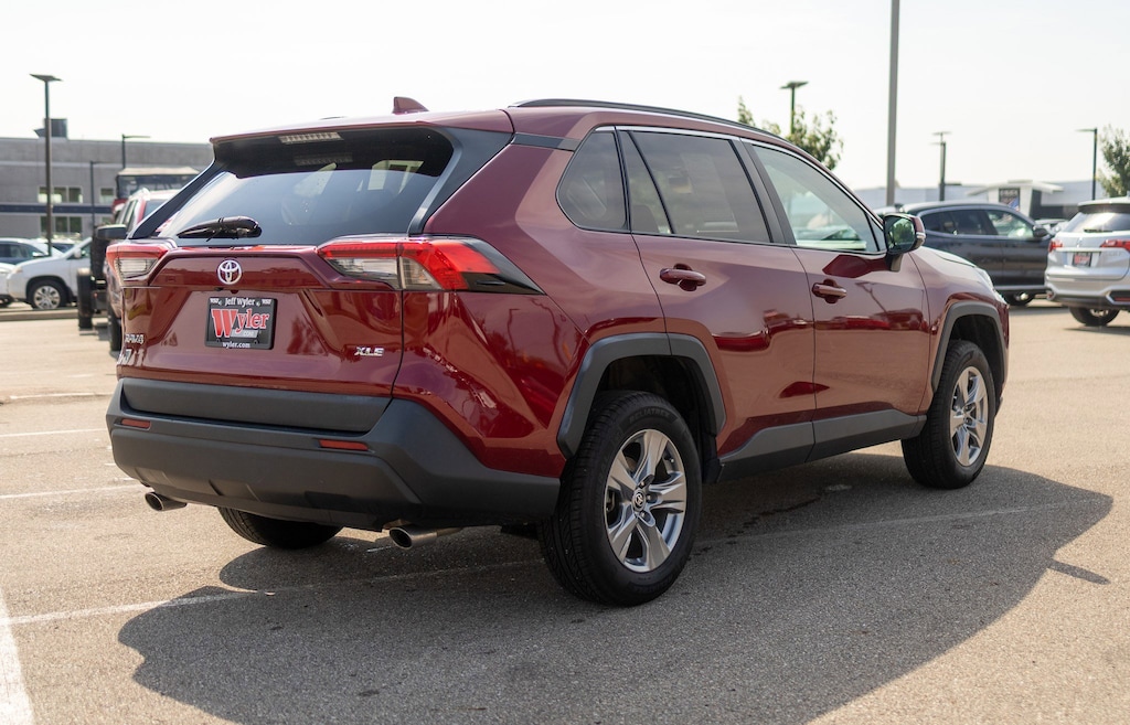 Jeff Wyler Springfield Auto Mall is honored to offer this good-looking 2022 Toyota RAV4 XLE in Maroon. Well equipped with: 4-Wheel Disc Brakes, 6 Speakers, ABS brakes, Air Conditioning, Alloy wheels, AM/FM radio: SiriusXM, AM/FM Stereo, Apple CarPlay/Android Auto, Auto High-beam Headlights, Automatic temperature control, Axle Ratio: 3.177, Brake assist, Bumpers: body-color, Delay-off headlights, Driver door bin, Driver vanity mirror, Dual front impact airbags, Dual front side impact airbags, Electronic Stability Control, Emergency communication system: Safety Connect with 1-year trial, Exterior Parking Camera Rear, Fabric Seat Trim, Four wheel independent suspension, Front anti-roll bar, Front Bucket Seats, Front Center Armrest, Front dual zone A/C, Front reading lights, Fully automatic headlights, Heated door mirrors, Illuminated entry, Knee airbag, Low tire pressure warning, Occupant sensing airbag, Outside temperature display, Overhead airbag, Overhead console, Panic alarm, Passenger door bin, Passenger vanity mirror, Power door mirrors, Power driver seat, Power steering, Power windows, Radio data system, Rear anti-roll bar, Rear seat center armrest, Rear window defroster, Rear window wiper, Remote keyless entry, Roof rack: rails only, Speed control, Speed-sensing steering, Split folding rear seat, Spoiler, Steering wheel mounted audio controls, Tachometer, Telescoping steering wheel, Tilt steering wheel, Traction control, Trip computer, Turn signal indicator mirrors, Variably intermittent wipers, and Wheels: 17" 5-Spoke Silver Alloy. Ask about available certifications. Used vehicles 10 years of age or newer with less than 100,000 miles are eligible for the Wyler Assurance Program, but eligible vehicles must pass our reconditioning process and multi-point inspection. Provided the vehicle passes inspection, vehicles will be eligible for the 6 month/6,000 mile limited warranty. The 6 month/6,000 mile limited warranty is NOT available on AS-IS vehicles, wholesale vehicles, lease buyback/pass-thru vehicles or un-inspected vehicles. Note that this program can also apply to vehicles where the remaining factory coverage is less than 6 months or 6,000 miles. Please check the Federal Trade Commission (FTC) Buyers guide on the vehicle for full details as to whether or not warranty coverage may apply. Contact Dealer for additional details. The Wyler Assurance 6 month/6,000 Mile limited warranty ends 6 months from the date of the Retail Purchase Agreement (BUYERS ORDER) or when the vehicle's odometer registers 6,000 additional miles to the mileage listed on the BUYERS ORDER, whichever comes first. Your Deductible - The warranty holder on your contract pays the first $100 of each covered repair.